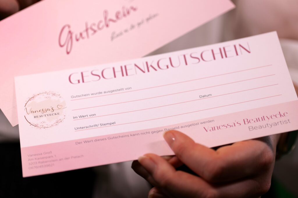 Du möchtest jemandem eine besondere Freude machen? Mit einem Gutschein von Vanessa’s Beautyecke verschenkst du Entspannung, Schönheit und Wohlbefinden!