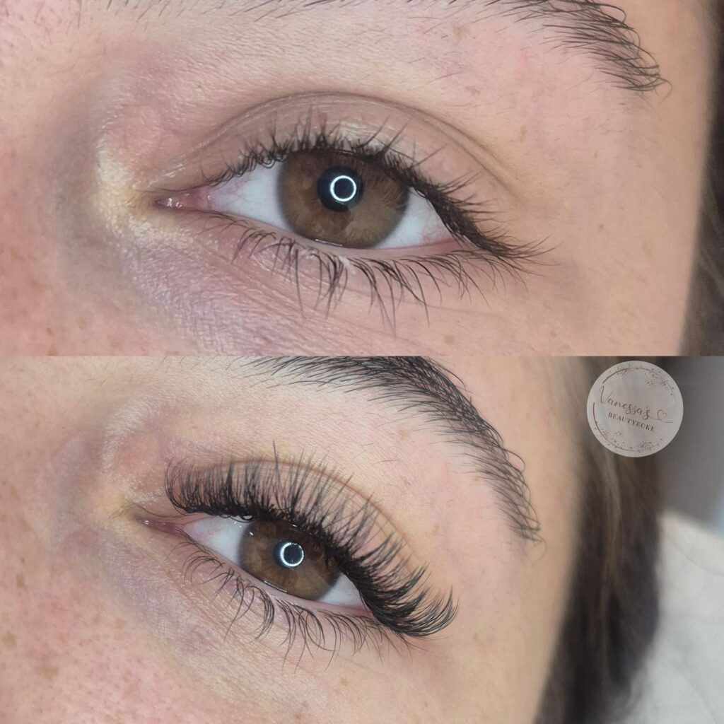 - Anwendung: In entspannter Atmosphäre werden die Wimpern einzeln aufgebracht (Dauer: ca. 2 Stunden).